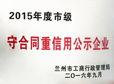2016年9月1日,由蘭州市工商行政管理局評選的蘭州市2015年度“守合同重信用公示企業(yè)”對社會各界發(fā)布,本次全蘭州市共發(fā)布88個“守合同重信用公示企業(yè)”。甘肅中集實業(yè)集團(tuán)有限公司子公司甘肅中集房地產(chǎn)開發(fā)有限公司憑借“重誠信、謀發(fā)展”的經(jīng)營發(fā)展模式,喜獲蘭州市2015年度“守合同重信用公示企業(yè)”榮譽(yù)稱號,為甘肅中集集團(tuán)發(fā)展里程再添輝煌。