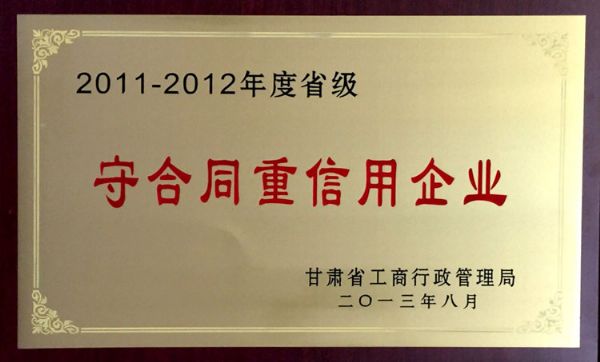 2013年8月,甘肅中集房地產(chǎn)開發(fā)有限公司榮獲“2011-2012年度省級(jí)守合同重信用企業(yè)”;