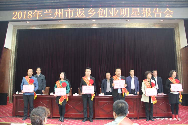 2018年10月12日下午,蘭州市就業(yè)和人才服務(wù)局舉辦的蘭州市返鄉(xiāng)創(chuàng)業(yè)明星報(bào)告會(huì)在西北賓館會(huì)議廳隆重召開。會(huì)上,甘肅中集實(shí)業(yè)集團(tuán)有限公司黨委書記、董事長(zhǎng)周啟濤榮獲“蘭州市返鄉(xiāng)創(chuàng)業(yè)明星”榮譽(yù)稱號(hào)。