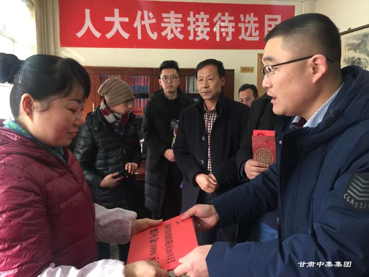 2018年2月7日上午,在2018年新春佳節(jié)即將來臨之際,甘肅省慈善總會榮譽(yù)會長、安寧區(qū)人大代表、甘肅中集集團(tuán)董事長周啟濤親自安排部署,并委托集團(tuán)公司黨委委員魏建峰、安  康兩位同志親自前往安寧區(qū)十里店街道辦事處,在街道黨工委副書記、人大工委主任梅鵬飛等領(lǐng)導(dǎo)陪同下,開展愛心送溫暖行動,為街道10戶特困家庭送上新年的祝福和慰問金。