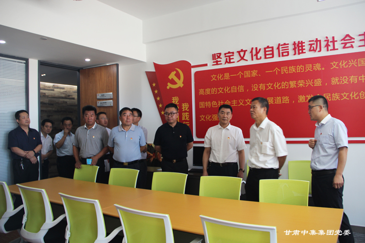 調(diào)研組一行首先參觀了集團(tuán)公司黨委宣傳陣地、黨員活動(dòng)室、談心談話室、閱覽室、健身中心等,通過查看黨支部建設(shè)標(biāo)準(zhǔn)化資料、聽取專題工作匯報(bào)和現(xiàn)場(chǎng)交談后,韓  旭副局長(zhǎng)對(duì)甘肅中集集團(tuán)黨委創(chuàng)新工作思路給予充分肯定,重點(diǎn)對(duì)黨支部建設(shè)標(biāo)準(zhǔn)化、樓宇黨建工作特色和亮點(diǎn),特別是集團(tuán)公司黨委開辟了非公經(jīng)濟(jì)組織黨建工作的新路子、在開展 “三崗聯(lián)創(chuàng)”、“三亮”、“立足崗位做貢獻(xiàn)”等活動(dòng)中取得優(yōu)異成績(jī)給予充分肯定。他強(qiáng)調(diào):“甘肅中集集團(tuán)黨委黨建工作抓住了非公企業(yè)黨建存在問題的關(guān)鍵,充分發(fā)揮了黨組織的政治優(yōu)勢(shì)和組織優(yōu)勢(shì),通過黨員隊(duì)伍建設(shè)和加強(qiáng)組織力,提高了企業(yè)經(jīng)營(yíng)管理水平,黨建各項(xiàng)工作求真務(wù)實(shí),開拓創(chuàng)新”。他現(xiàn)場(chǎng)向西北五省、市非公黨建負(fù)責(zé)人強(qiáng)調(diào):“要以此次觀摩為契機(jī),認(rèn)真學(xué)習(xí)借鑒甘肅中集集團(tuán)黨委的成功經(jīng)驗(yàn)和做法,特別是把黨支部建設(shè)在樓宇、打造紅色紐帶工程和深入推進(jìn)黨支部建設(shè)標(biāo)準(zhǔn)化、強(qiáng)化組織建設(shè)、創(chuàng)新活動(dòng)方式、營(yíng)造非公經(jīng)濟(jì)組織黨建工作的濃厚氛圍、為提升樓宇總部經(jīng)濟(jì)高質(zhì)量發(fā)展提供堅(jiān)強(qiáng)的政治保障和組織保障方面要大力學(xué)習(xí)和推廣。”
