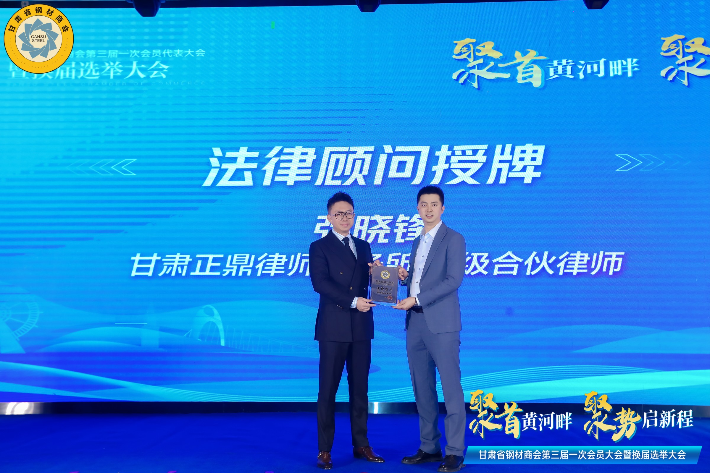 甘肅省鋼材商會(huì)會(huì)長(zhǎng)周啟濤為法律顧問(wèn)單位--甘肅正鼎律師事務(wù)所授牌