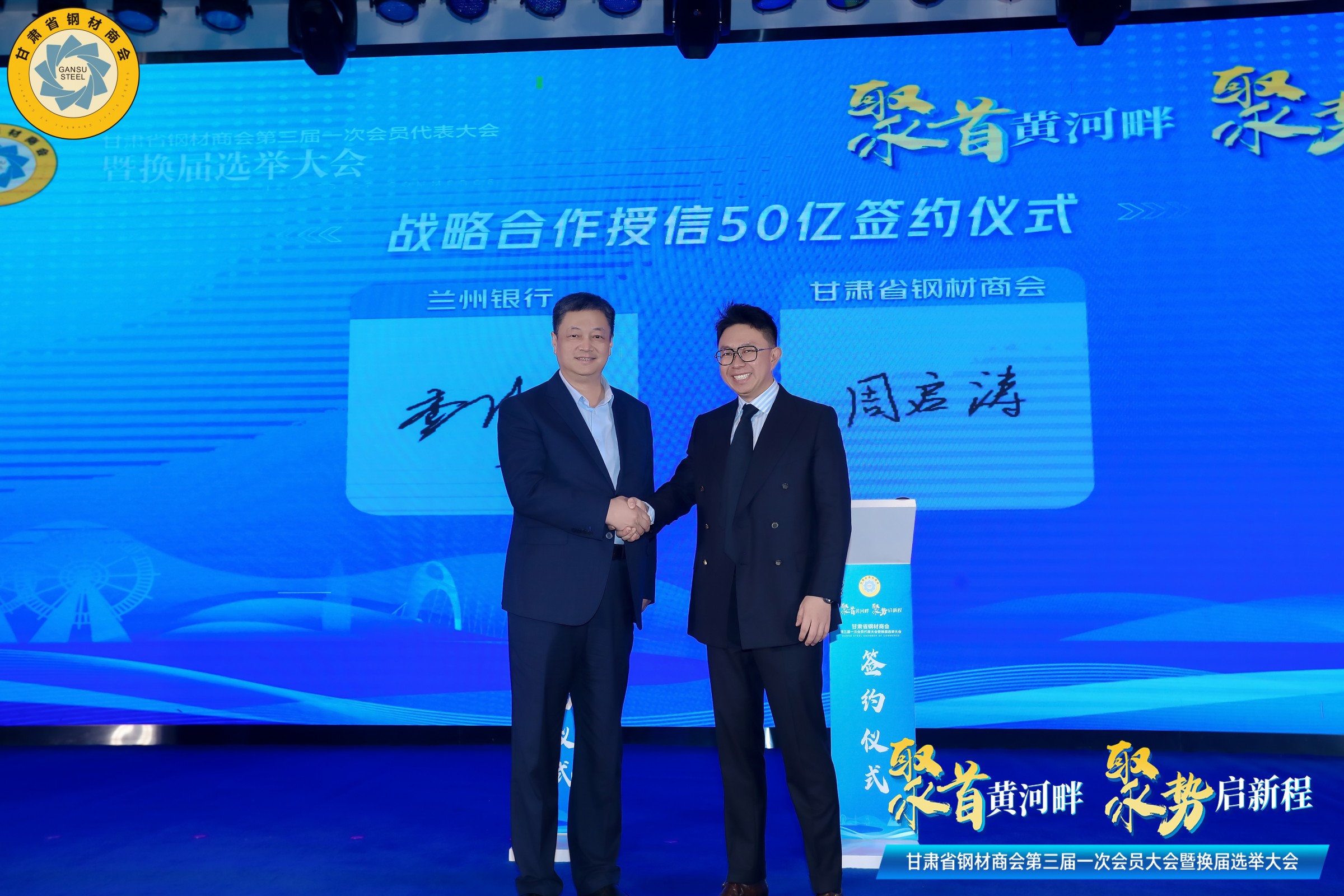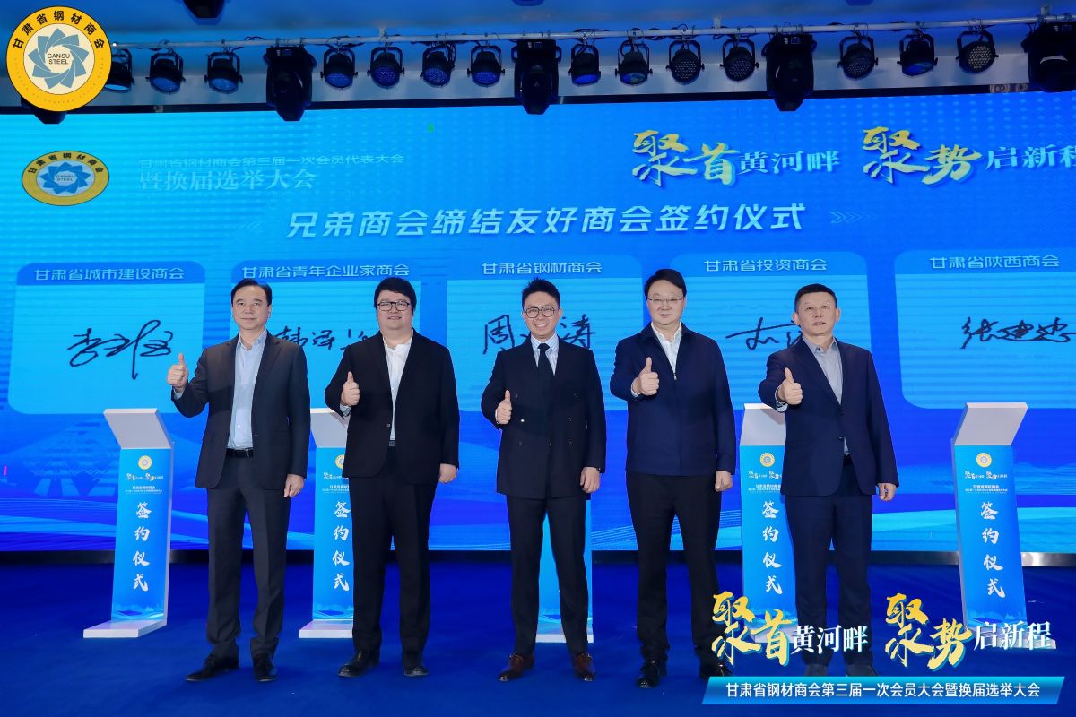 在合作交流環(huán)節(jié),甘肅省鋼材商會(huì)分別與甘肅省陜西商會(huì)、甘肅省城市建設(shè)商會(huì)、甘肅省青年企業(yè)家商會(huì)、甘肅省投資商會(huì)舉行友好商會(huì)簽約儀式,并分別與上海鋼聯(lián)電子商務(wù)有限公司(我的鋼鐵網(wǎng))達(dá)成戰(zhàn)略合作協(xié)議,并與蘭州銀行成功簽訂50億元授信協(xié)議,為甘肅省鋼材商會(huì)及會(huì)員發(fā)展提供資金、平臺(tái)、戰(zhàn)略合作的多方支持。