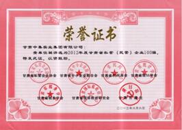 圖6:集團登記證                 圖7:甘肅省私營企業(yè)100強